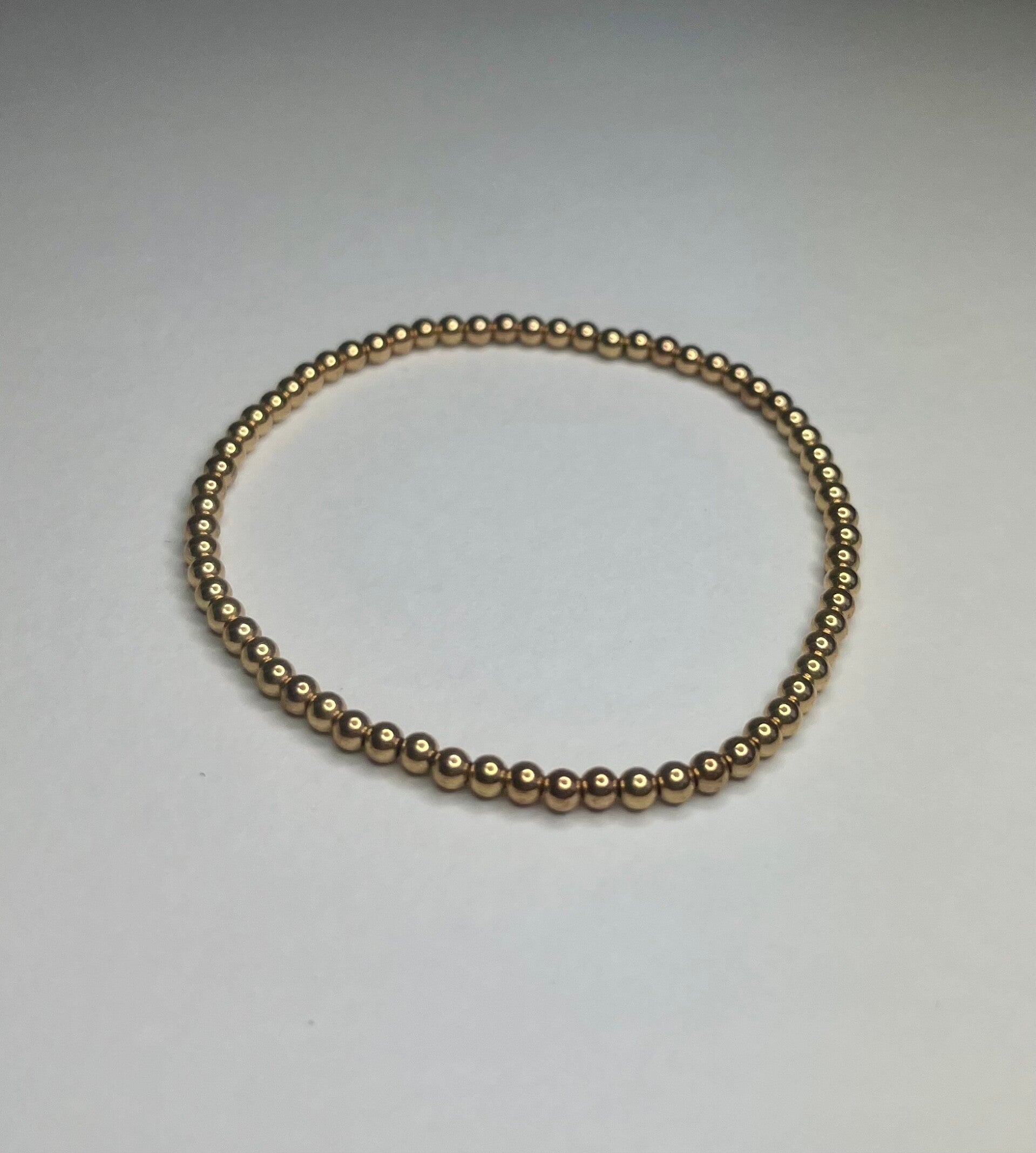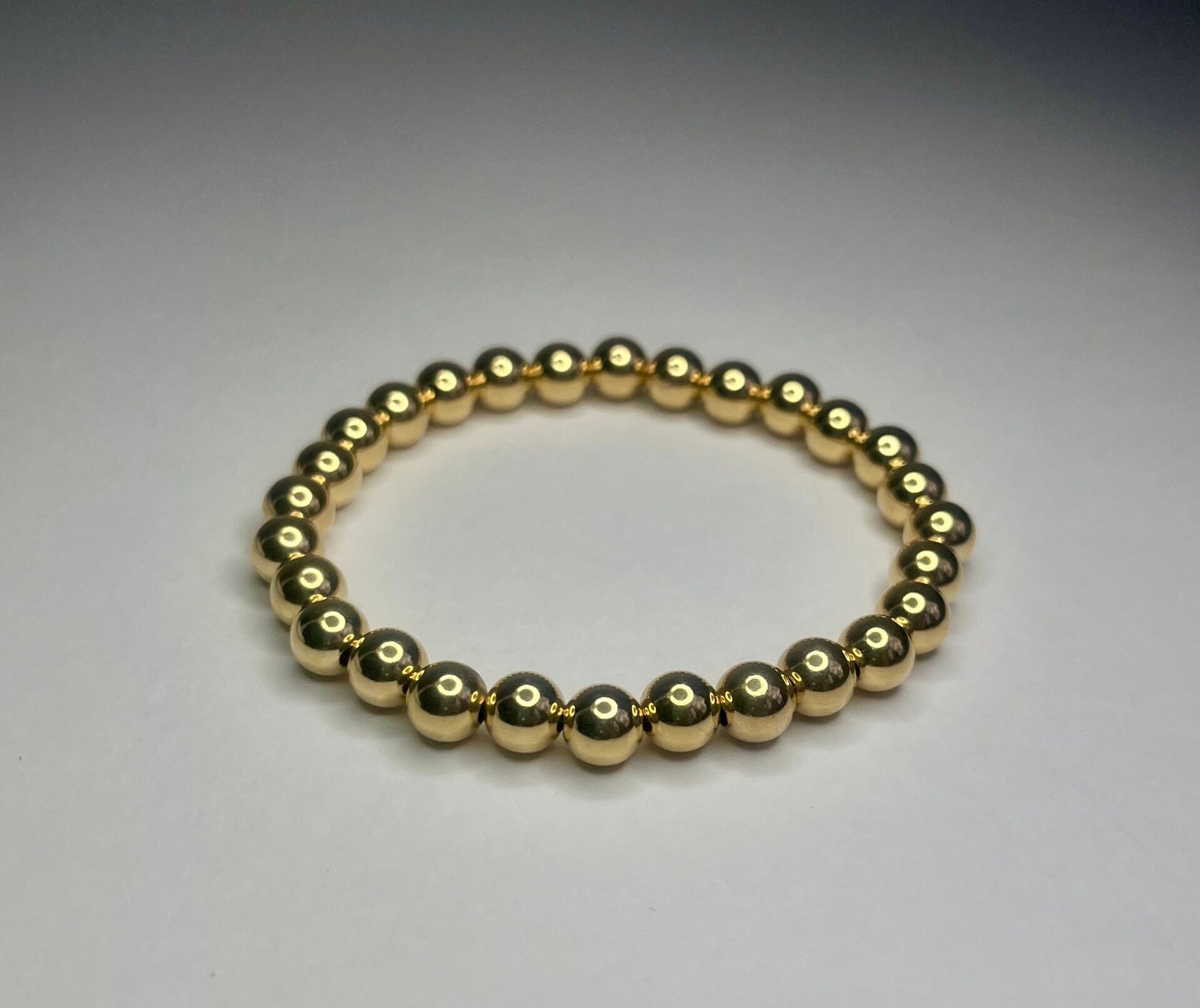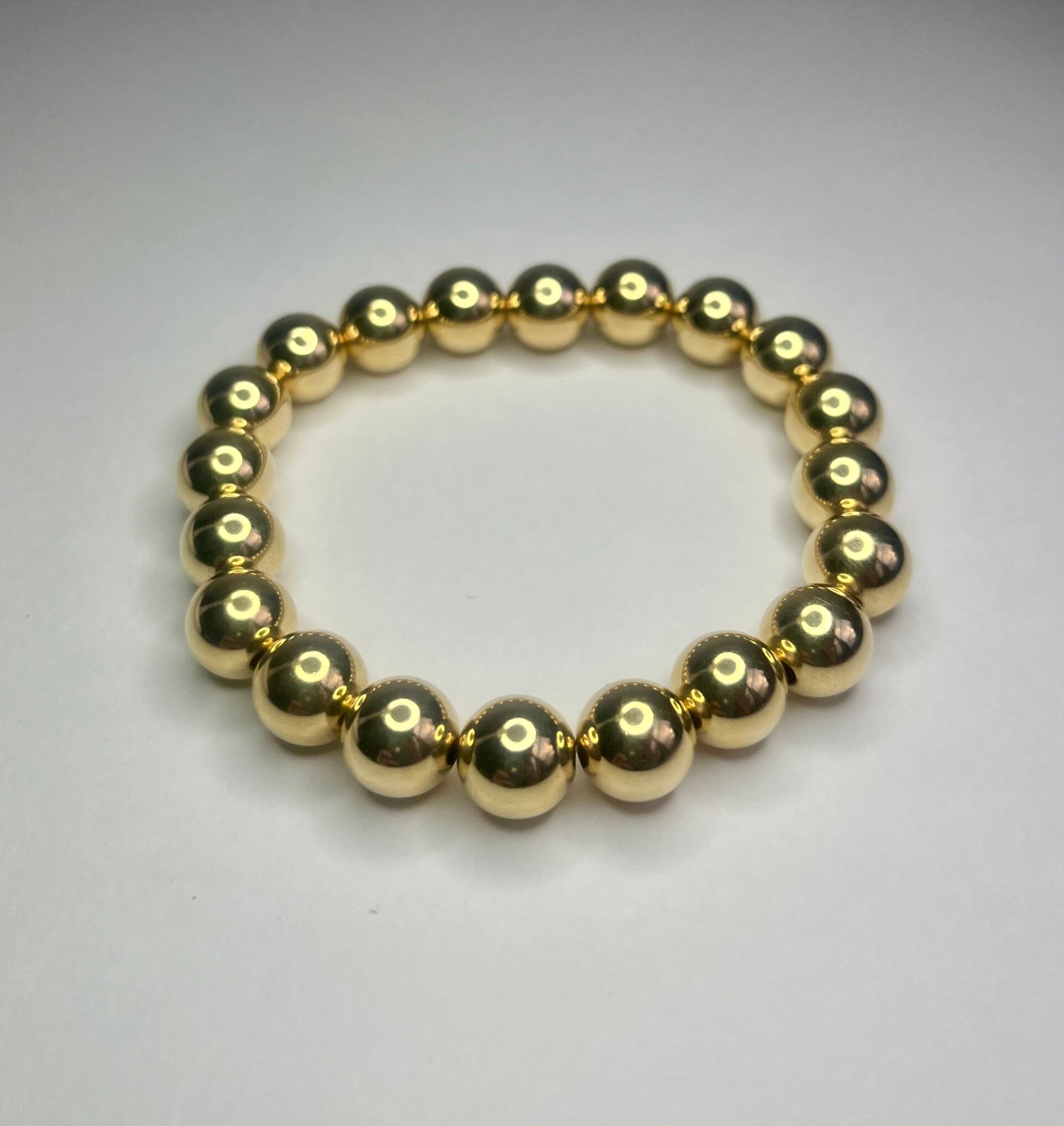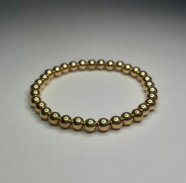 Elastiche armband met goudkleurige balletjes.