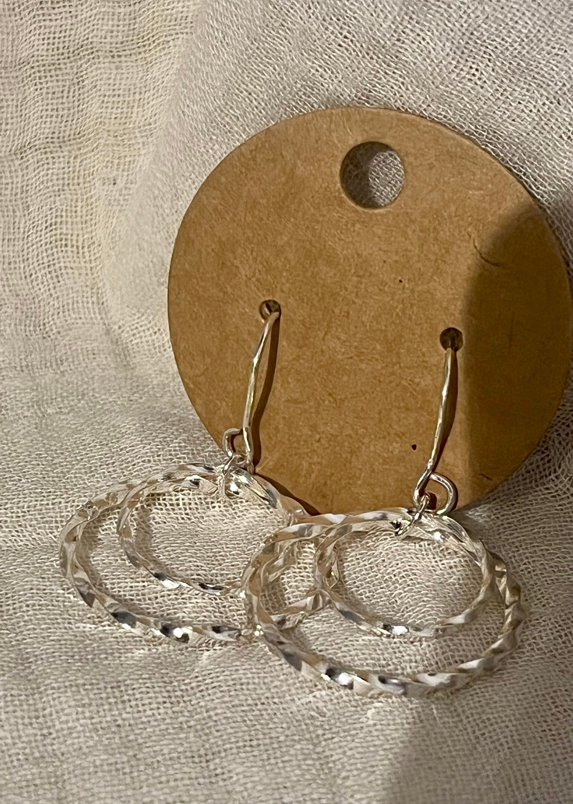 Deze swirl dubbel ringen zijn handgemaakt van zilverdraad, doordat het vierkante zilverdraad gedraaid is glinsteren ze mooi.