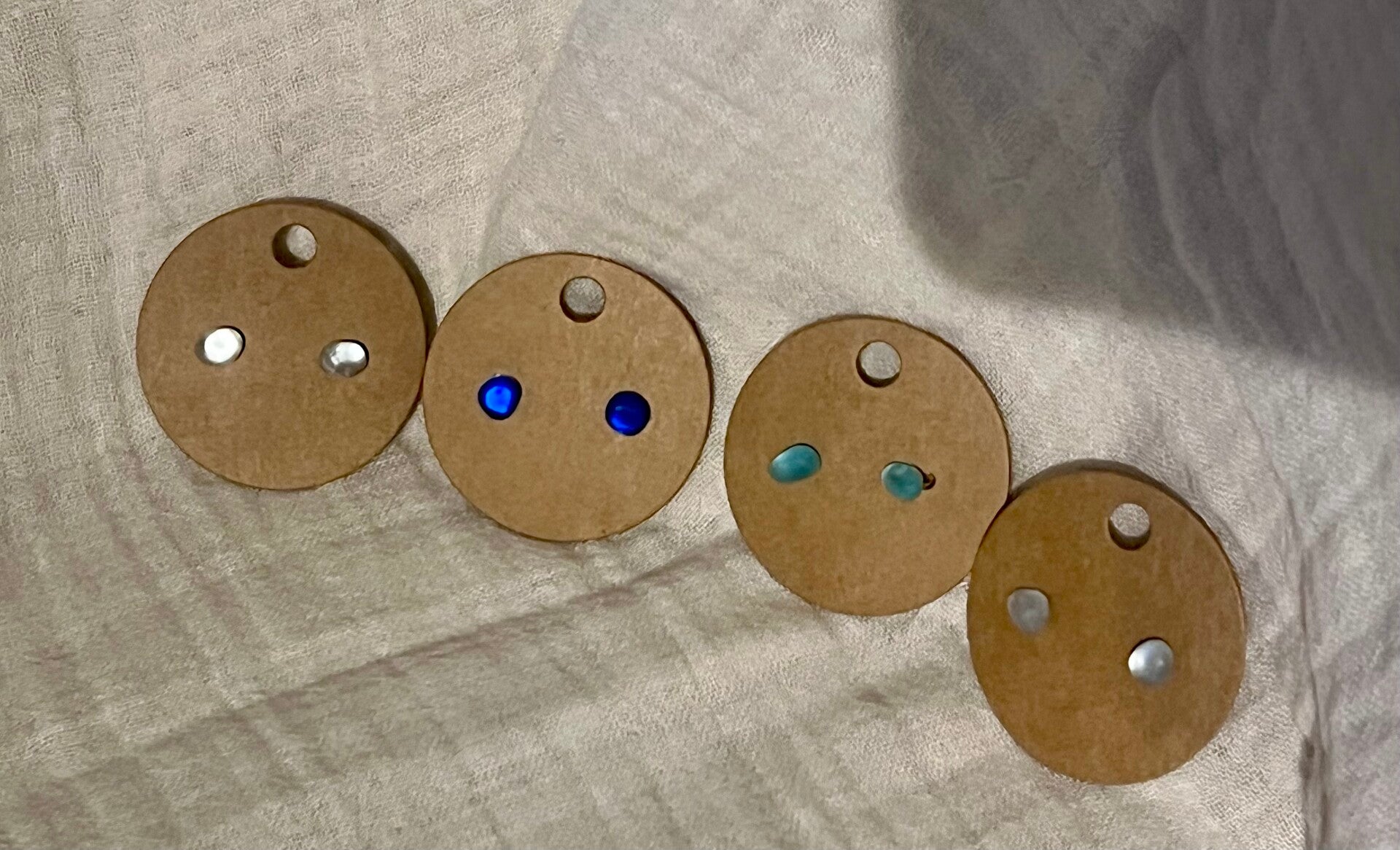 Studs met een stukje zeeglas erop. Light bleu heeft een hele lichte vleug blauw erin. Elk stukje is uniek.
